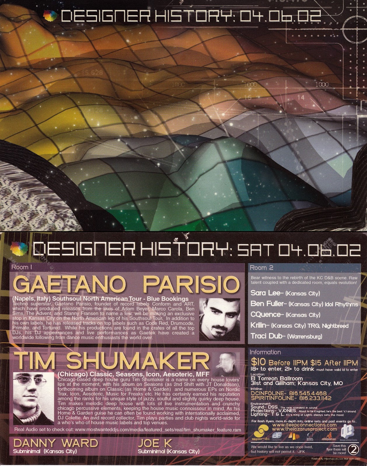 A fantastic night of Techno and Tech House featuring one of the finest in the industry Gaetano Parisio - Southsoul North American Tour - Blue Bookings - Naples, Italy.  Also performing:  Tim Shumaker - Classic, Seasons, Icon, Aesoteric, MFF - Chicago ... Danny Ward - Subminimal -KC ... and Joe K - Subminimal - KC.  A second room provided alternate beats from locals Sara Lee, Ben Fuller, cQuence, Krillin & Traci Dub